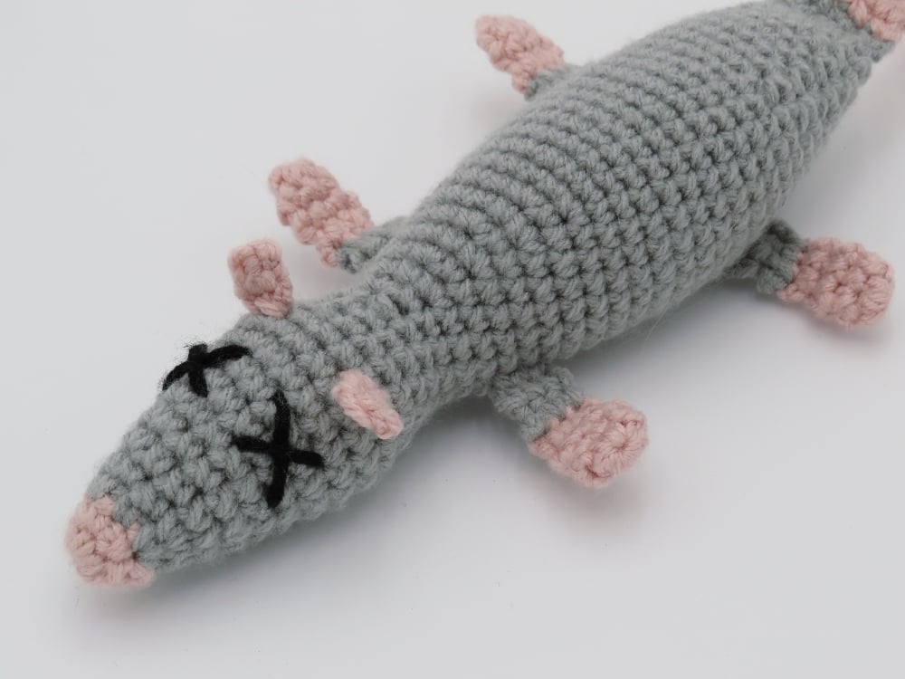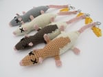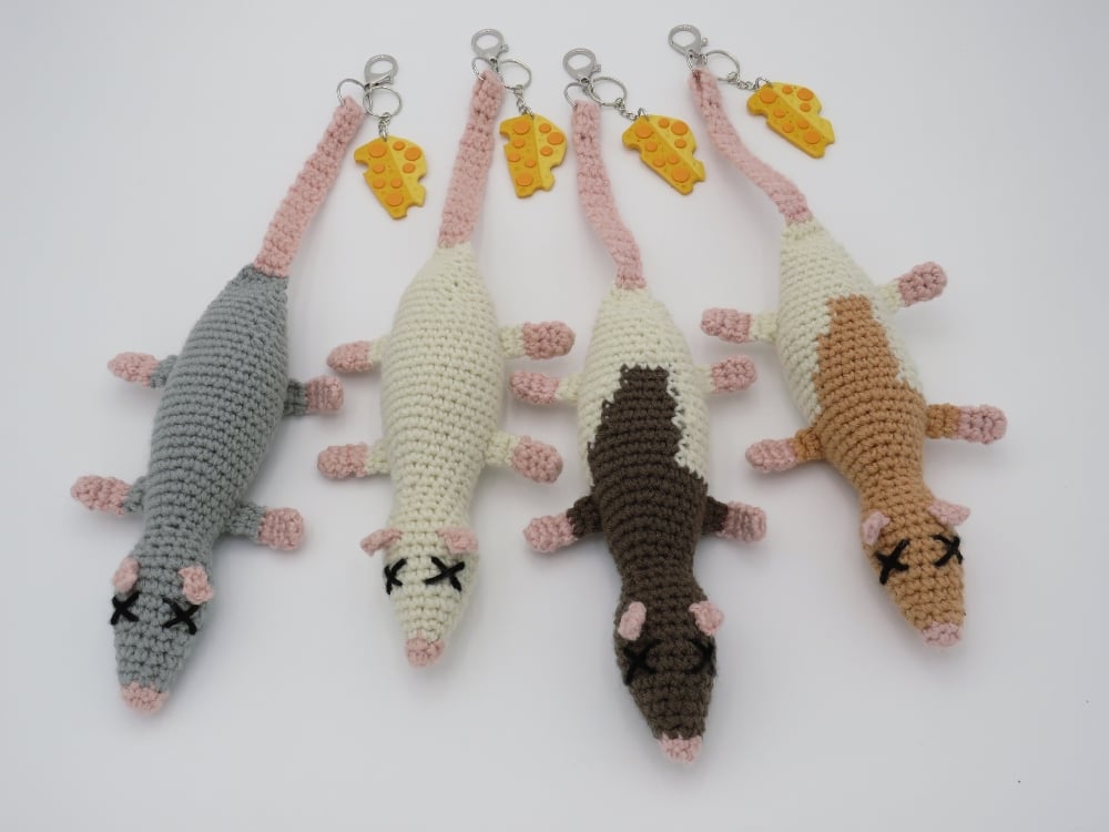 Stuffed rat charm is made with acrylic yarn (do not machine wash) and is approximately 17 inches long